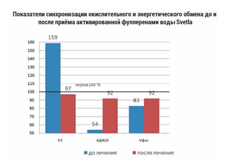 Однако не так всё плохо. Исследованиями в Москве акад. Г.П. Гулидовой доказано, что активированная фуллеренами – антиоксидантами длительного действия минеральная вода «SVETLA» тоже обладает антиоксидантными свойствами. В организме она нейтрализует, свободные радикалы без участия природных антиоксидантов, коими являются дефицитные жизненно необходимые витамины и микроэлементы, которые при этом экономятся и выполняют свои задачи по выработке энергии увеличивая ее кол-во в ослабленных местах, не допуская в них болезней и замедляя старение.