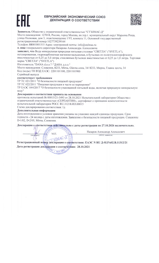 «Svetla» вода питьевая первой категории негазированная, активирована фуллеренами.